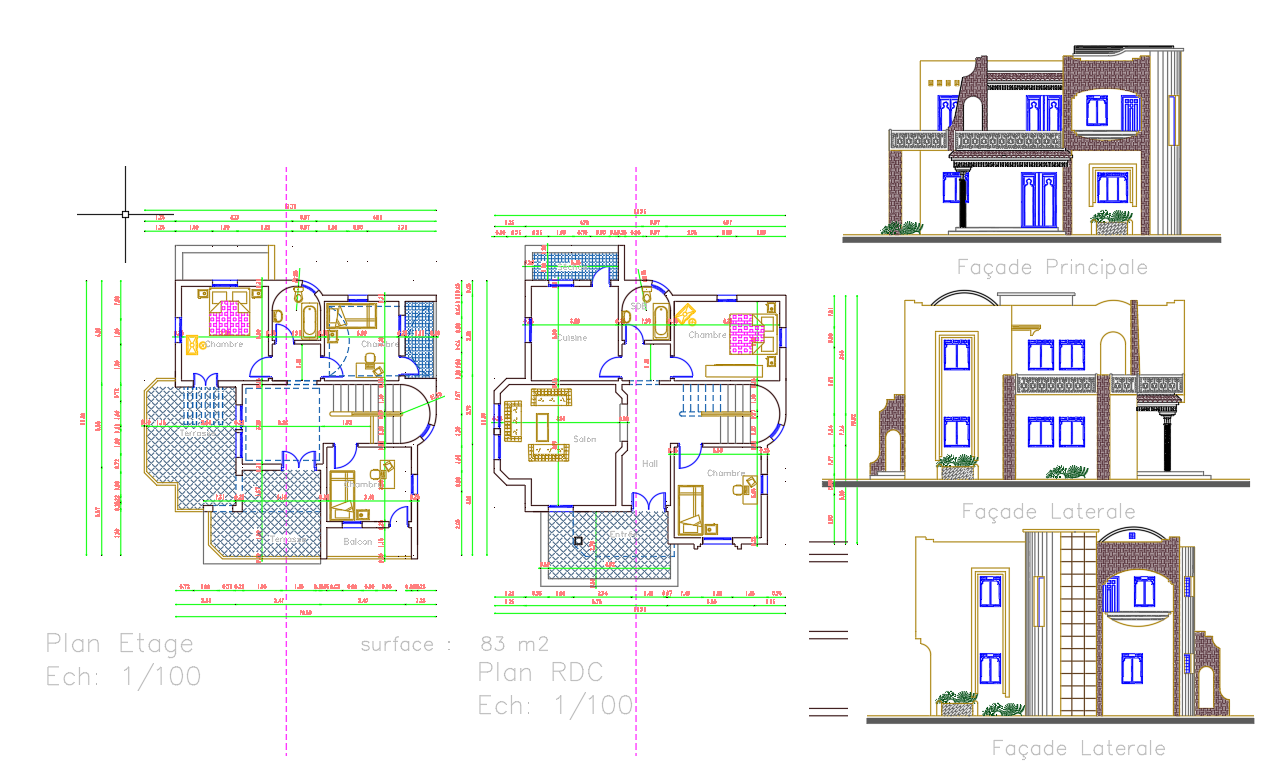 5 bhk luxurious architecture villas design cad drawings with all side elevations design, working plans and construction details drawing.