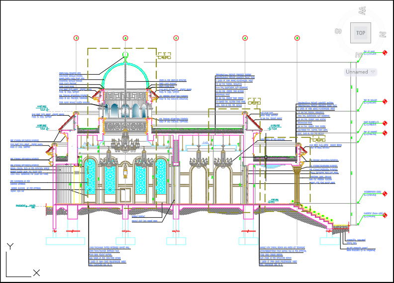 CAD DWG file is a detailed Mosque Building Side Elevation and Sections drawing.