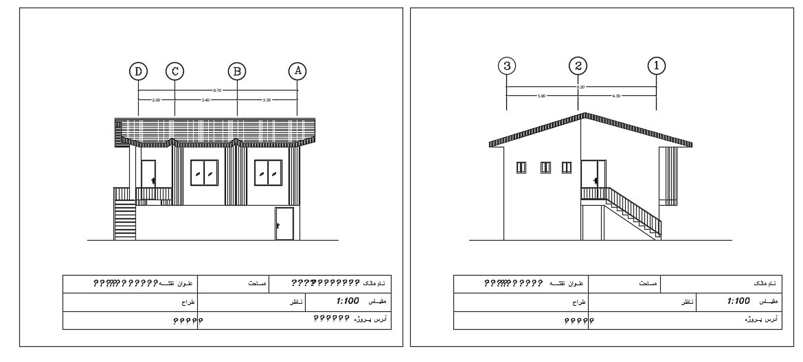 The front elevation, and right-side section views are given. In this elevation, an orange color design is provided to the parapet wall. In the right side section, a staircase is visible. The total height of the building up to roof level is 4.1m.
