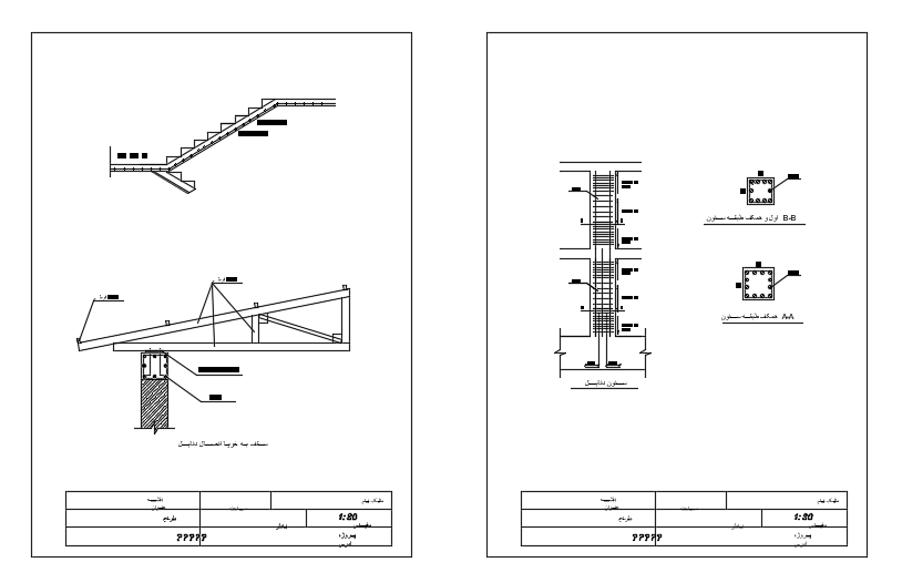 Staircase section drawing is shown in this AutoCAD 2d drawing file. In this drawing, bottom reinforcement details are mentioned. And also, column supporting detailed drawing is given with the dimension and reinforcement details. In the second image, the total building column cum beam joint details are given.