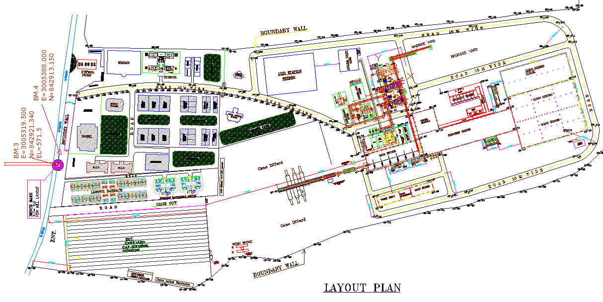 Architecture layout with detailing, zoning plan, aerial view, floor plan along with dimensions, structure plan, exterior landscaping, connecting road details.