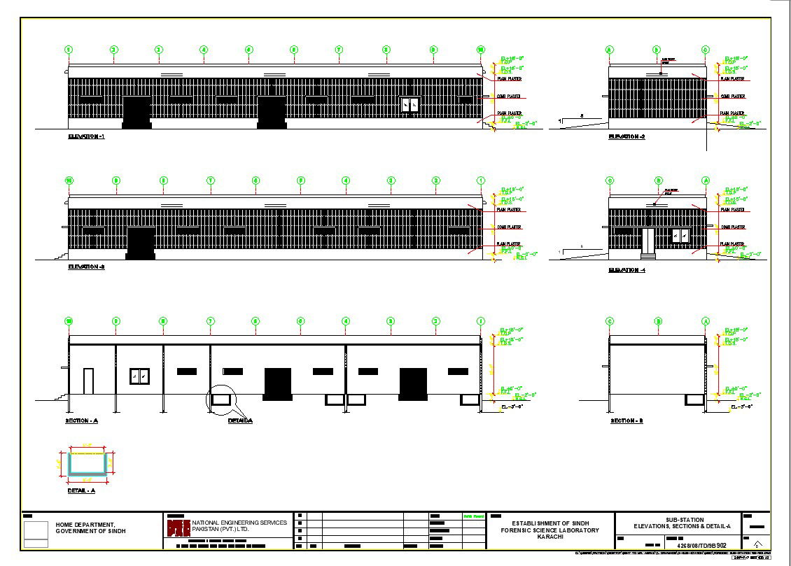 Elevation And Sectional Details Of The Sub-Station Dwg File