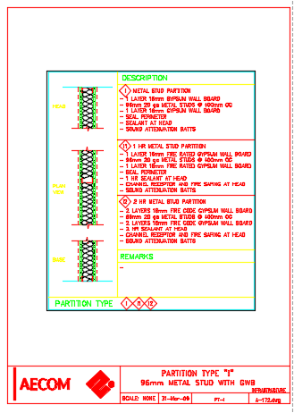 96 mm Metal Stud Partition type I detail