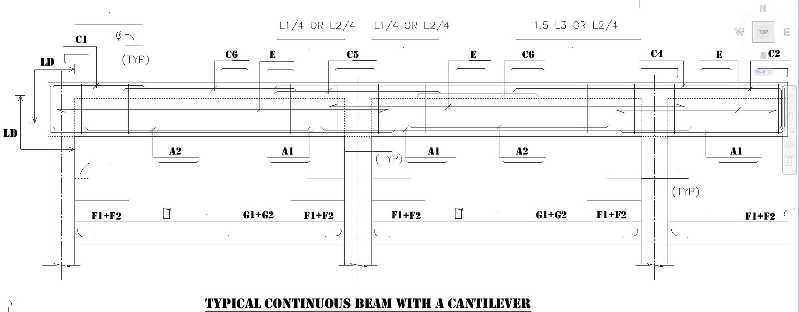 Typical Continuous Beam With A Cantilever AutoCAD Dwg File