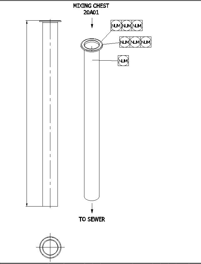 Isometric CAD Drawing of Mixing Chest Overflow Line with Pipes In AutoCAD DWG File