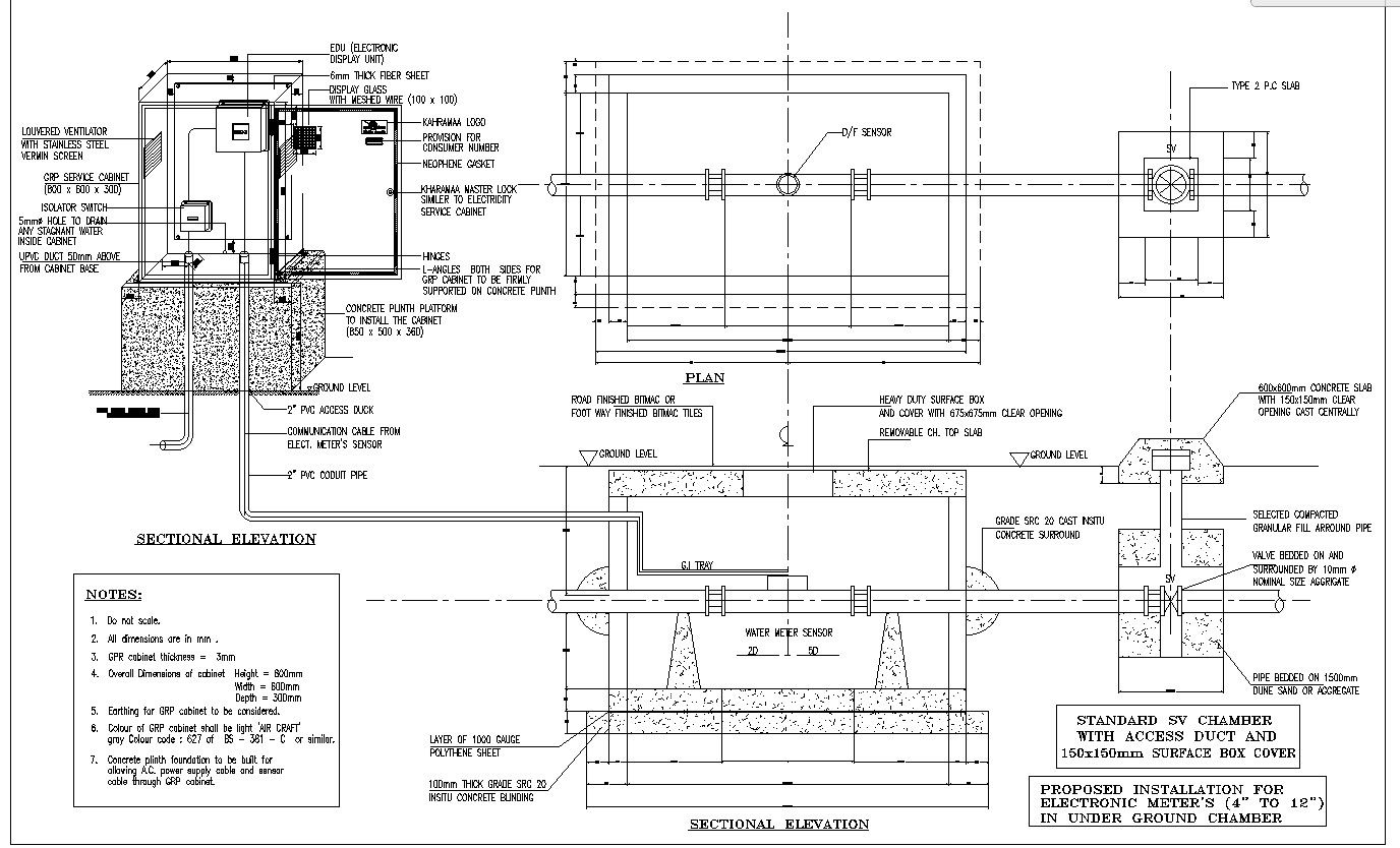 Water Supply Plan With Section And Elevation Detail CAD Drawing DWG File