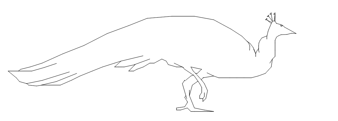 peacock dwg file, this auto cad file consists of 2d side elevation of a peacock in auto cad format