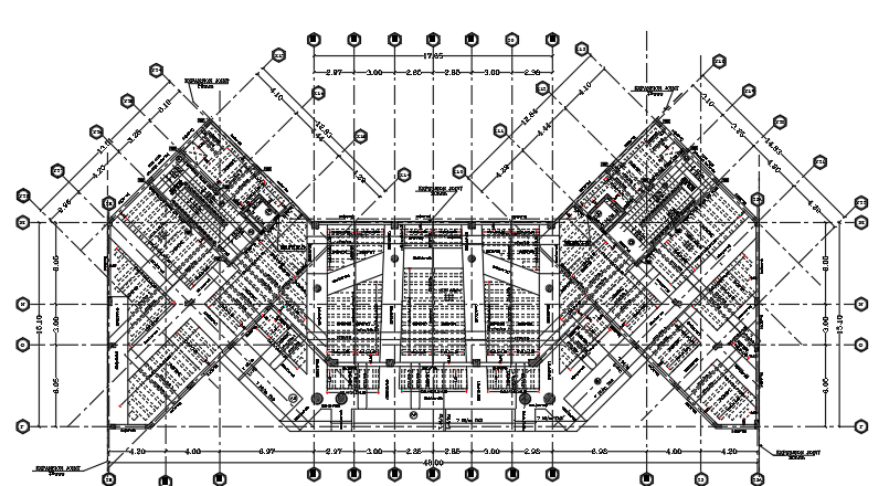 This detailed DWG file provides precise information on the steel reinforcement for the first-floor roof plan zone. It offers comprehensive insights and specifications to aid in construction, ensuring accuracy and efficiency in implementing the steel reinforcement details for this specific area of the building.