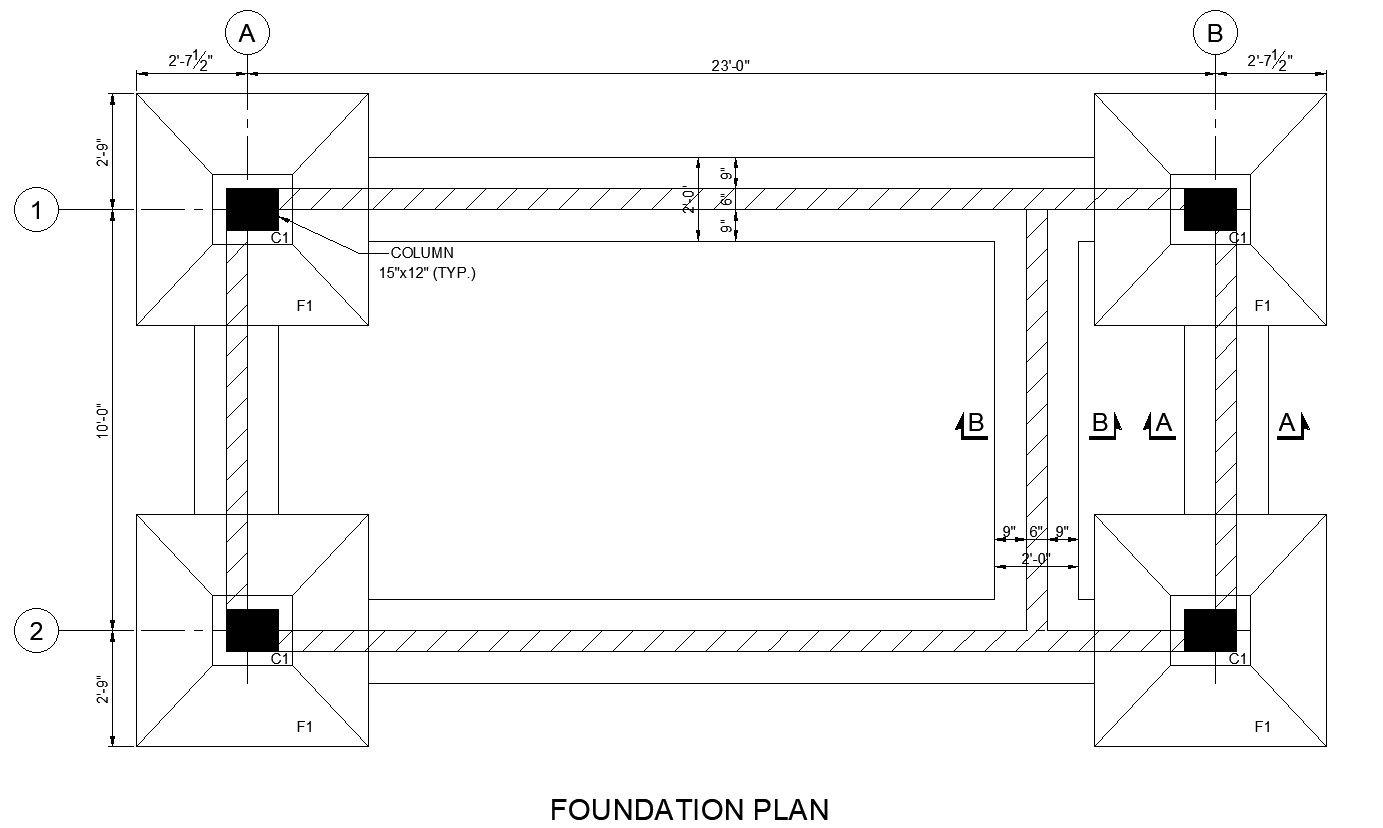 Detailed Foundation Plan CAD Drawing In AutoCAD DWG File