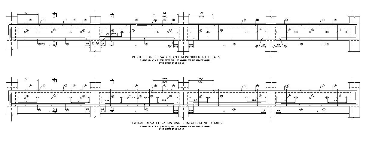 CAD Drawing Detail for Plinth Beam Elevation and Reinforcement In DWG File