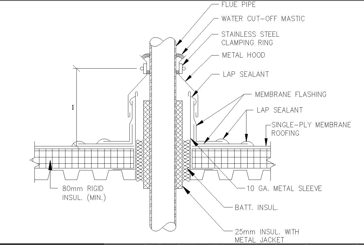 Detailed Hot Stack Flashing CAD Drawing In AutoCAD DWG File