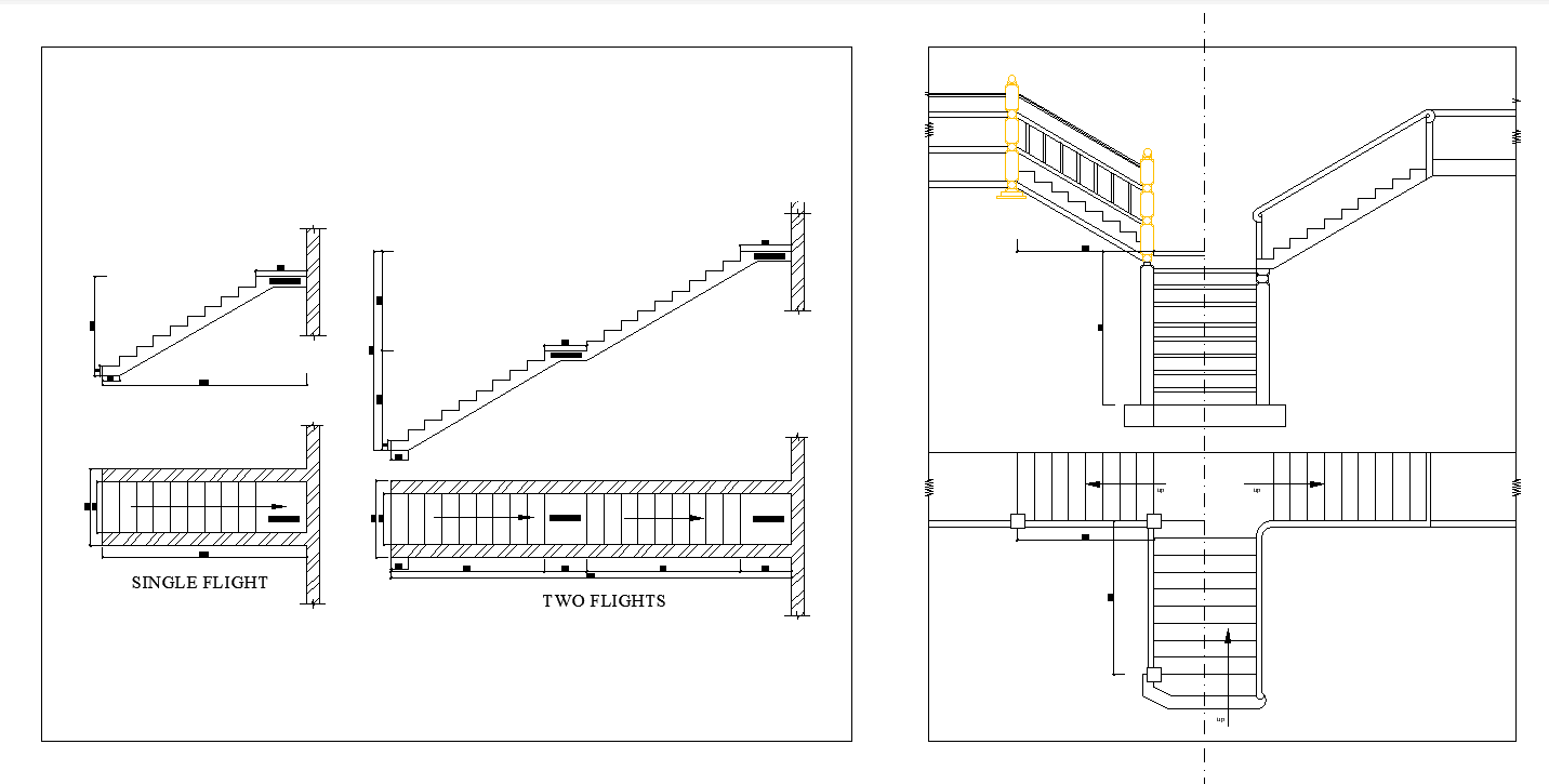 Detailed Layout Drawing for Sectional Staircase Design In AutoCAD DWG File