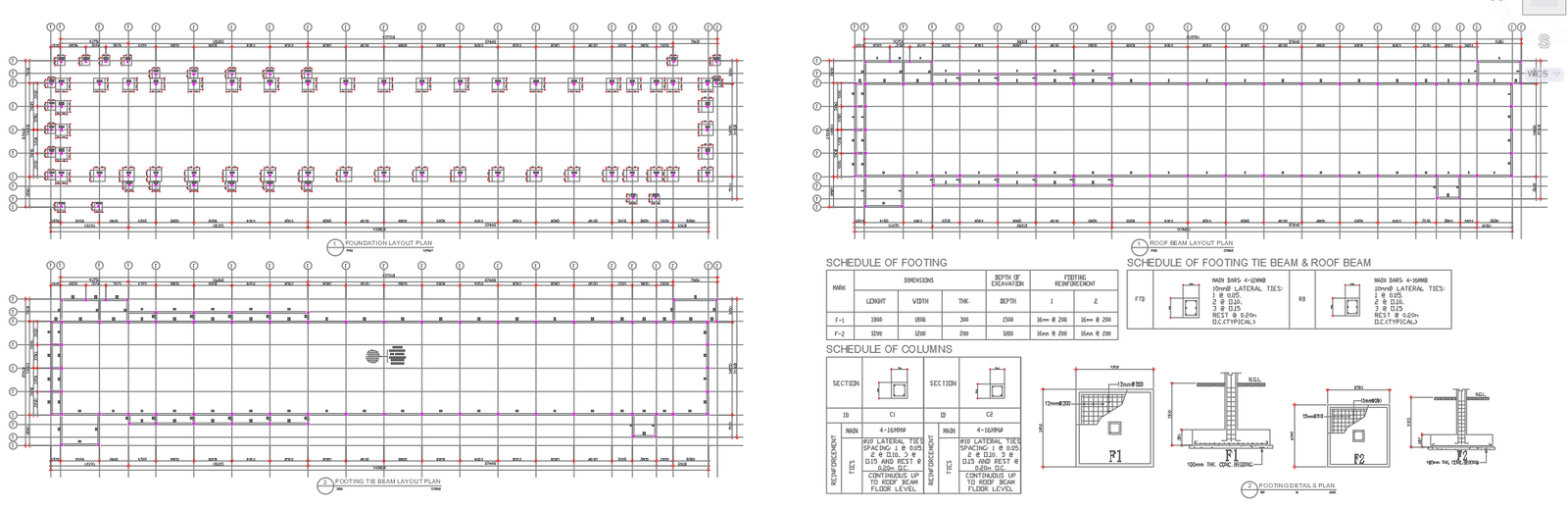 Foundation Plan with Footing Tie Beam and Column Detail CAD File