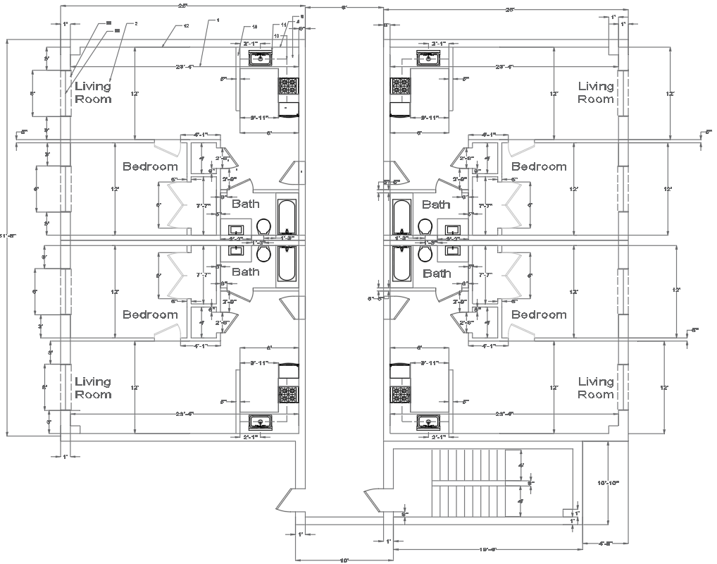 Nestled within the confines of a contemporary design, this 2-bedroom apartment layout, meticulously crafted in AutoCAD, offers a seamless blend of functionality and style. Spanning across a generous area of 51'6"X 25' every corner of this living space has been thoughtfully planned to optimize comfort and convenience. Upon entering, you're greeted by a well-defined living area, perfect for relaxation and entertainment alike. Adjacent to it, a modern kitchen area awaits, designed to inspire culinary creativity with its efficient layout. The two bedrooms, strategically positioned for privacy, provide ample space for rest and rejuvenation. Additionally, this layout features intelligently integrated storage solutions to maximize space utilization. Whether you're a young couple starting a new chapter or a small family seeking a cozy abode, this meticulously detailed AutoCAD plan promises to cater to your lifestyle needs with finesse.