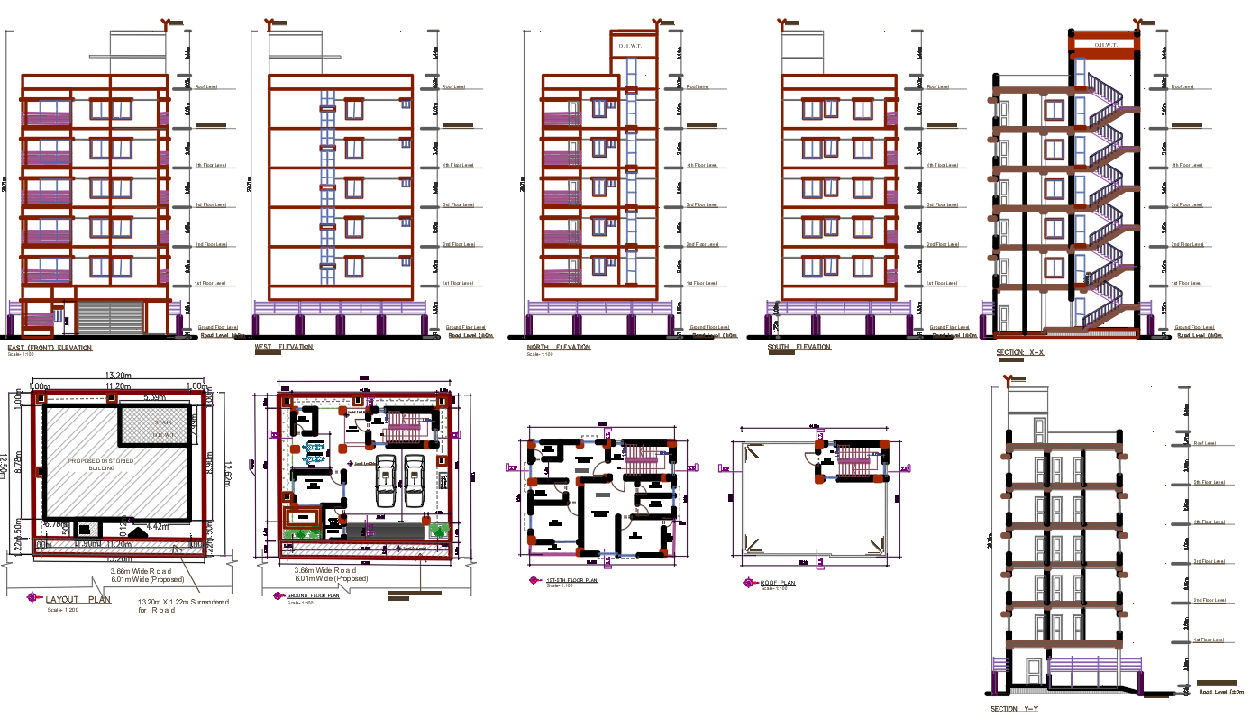 Get ready to explore a 5-storey residential building like never before with our detailed floor plan, sections, and all-around elevations, neatly packed in a user-friendly DWG file. This isn't your average CAD drawing – it's your go-to resource for hassle-free design. Easily accessible and compatible with AutoCAD, these CAD files make your life simpler. Whether you're an architect or a designer, this floor plan has got you covered. It's not just a drawing; it's a game-changer for your projects. So, why wait? Download the detailed floor plan with sections and elevations for the 5-storey residential building now and make your design process a breeze with this essential DWG file.