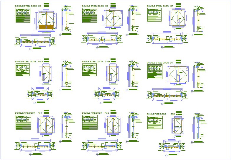 Steel door detail view with section dwg file with view of door handle,door frame and hinge view of door with door view and door dimension,door sectional view detail with