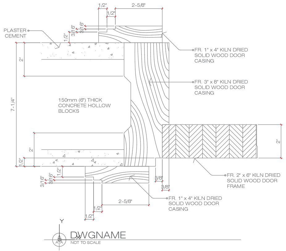 Explore the intricacies of a meticulously crafted main entry door jamb design in this AutoCAD DWG file. The detailed drawing features key elements such as FR. 1" x 4" kiln-dried solid wood door casing and FR. 3" x 8" kiln-dried solid wood door casing measuring 7-1/4". The design incorporates FR. 1" x 4" kiln-dried solid wood door casing alongside 150mm (6") thick concrete hollow blocks, offering a robust and stylish entrance solution. This CAD file provides a comprehensive visual representation for architects and designers, ensuring precision and ease of implementation in construction projects. Download this DWG file to access a valuable resource for your CAD drawings, combining the beauty of woodwork with the strength of concrete blocks for a sophisticated entry door jamb design.