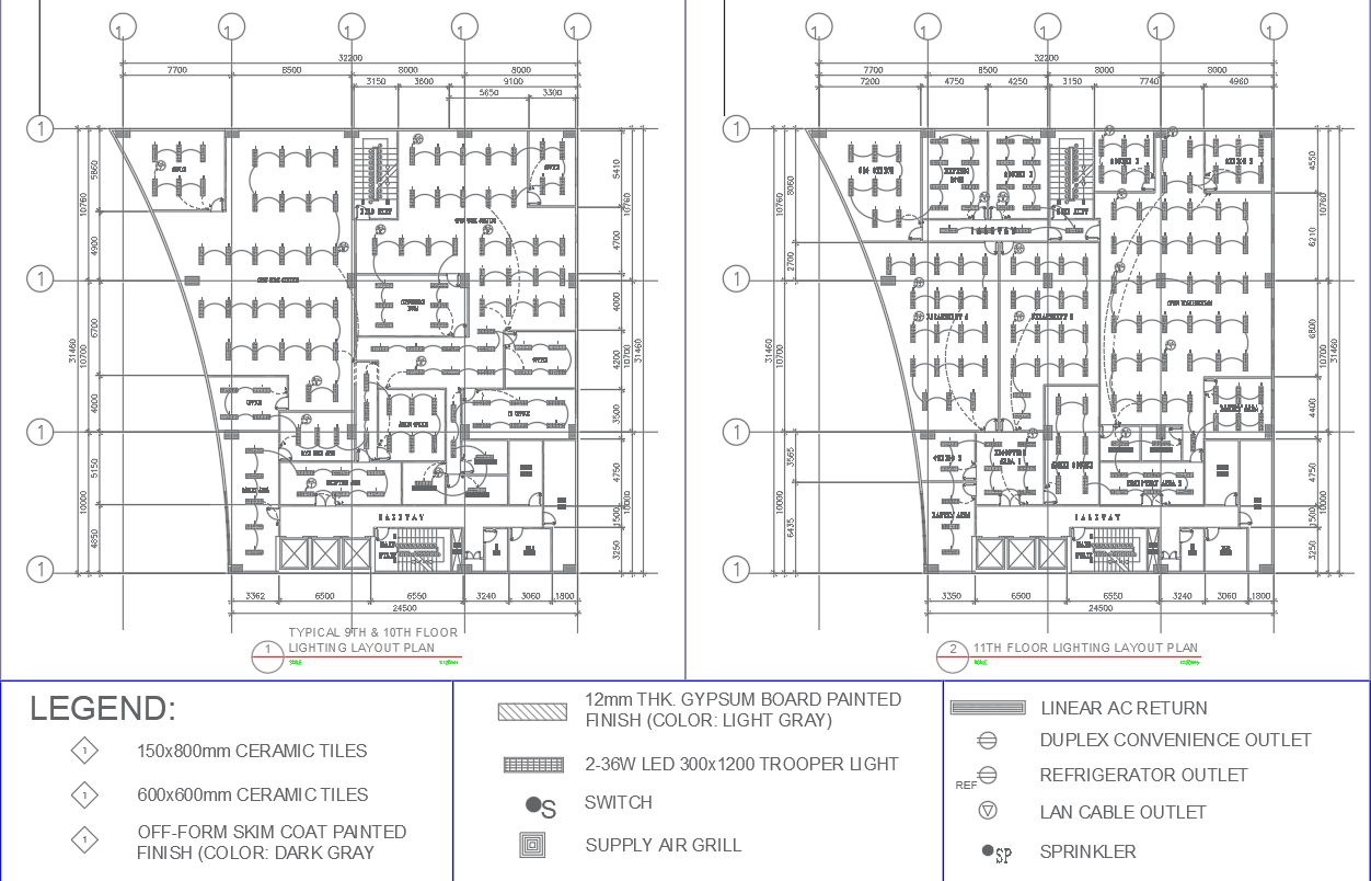 Explore the detailed lighting layout floor plan for a commercial building in this AutoCAD file. Dive into the intricacies of the typical 9th and 10th floor lighting layout, discovering the carefully crafted details that illuminate these spaces. The 11th floor lighting layout plan is also presented, offering insights into the well-thought-out placement of lights throughout. The CAD drawing provides a comprehensive view of the lighting design, with the DWG file ensuring easy accessibility for your project needs. Elevate your understanding of lighting arrangements in commercial spaces through this user-friendly and informative AutoCAD file, a valuable resource for architects and designers working on similar projects.
