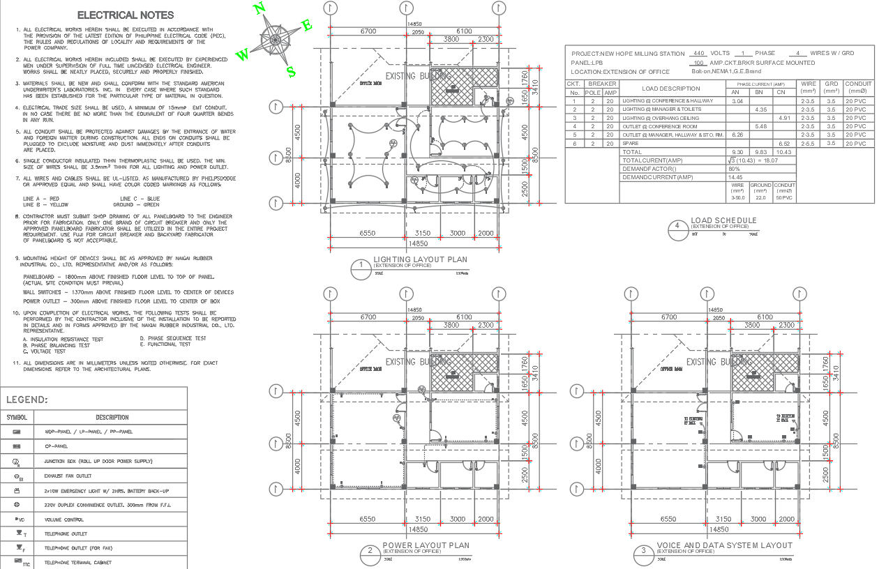 Explore the comprehensive Electrical Layout Plan Detail Drawing for an Office Extension in DWG File, providing you with a detailed blueprint for seamless integration of essential elements. The AutoCAD file effortlessly guides you through the intricacies of the project, presenting an organised LIGHTING LAYOUT PLAN that strategically illuminates every corner, a POWER LAYOUT PLAN ensuring reliable and efficient energy distribution, and a meticulous VOICE AND DATA SYSTEM LAYOUT for seamless communication infrastructure. The CAD drawing thoughtfully incorporates a LOAD SCHEDULE, offering a breakdown of the electrical loads to facilitate smooth operation. This electrical plan detail, tailored for an office extension, is a valuable resource for architects, engineers, and designers, delivering precision and clarity through CAD files. Download this DWG file to streamline your project and enhance the functionality of your space effortlessly.