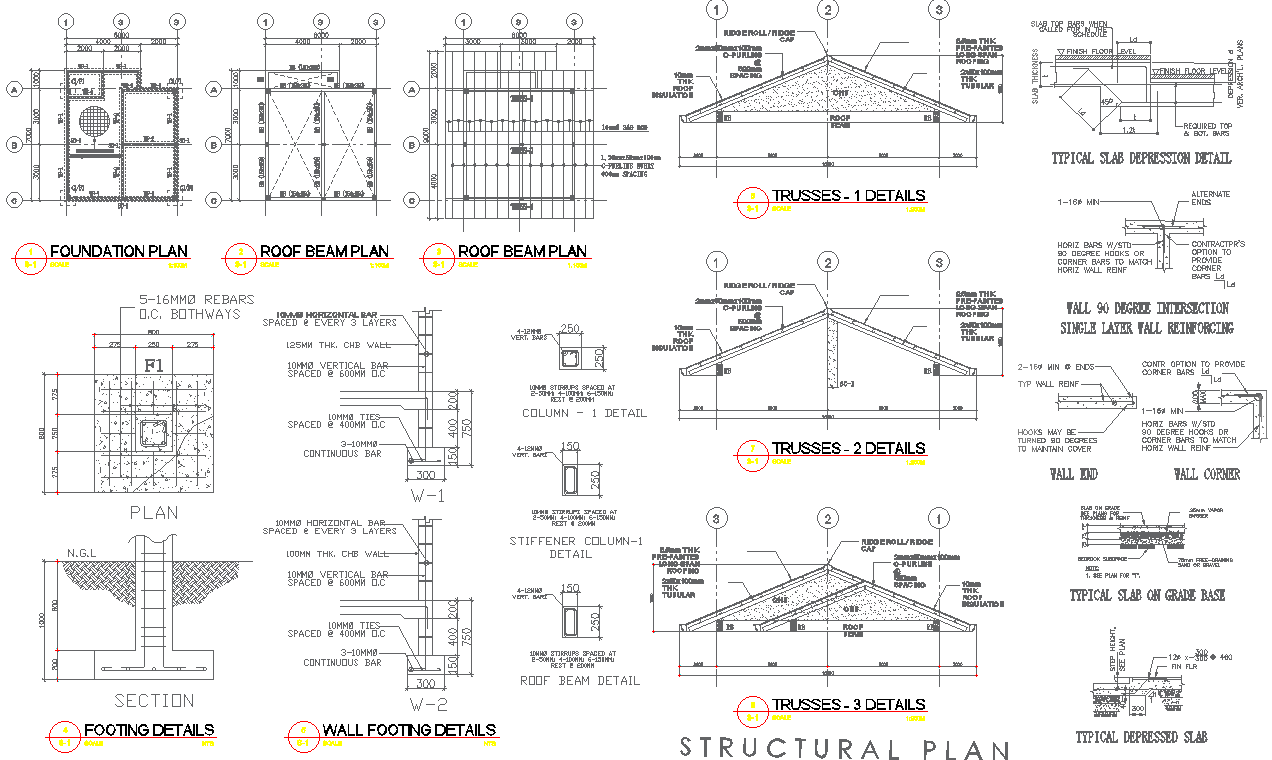 Discover comprehensive structural details for a two-bedroom residential bungalow with this meticulously crafted DWG file. Dive into the intricacies of the foundation plan, ensuring a solid and secure base for your dream home. Explore the roof beam plan, trusses details, and the intricacies of typical slab depression, providing a holistic understanding of the structural framework. Delve into the minutiae of footing details, roof beam specifics, column intricacies, and typical slab on grade base, gaining insights into every aspect of the bungalow's construction. Uncover the nuances of typical depressed slab, offering a complete structural overview. This CAD drawing encompasses essential elements like foundation, plan, section, beam, column, slab, and footing, providing a wealth of information for anyone involved in residential bungalow construction. Access the AutoCAD file to seamlessly incorporate these structural details into your project, ensuring precision and efficiency in your architectural endeavours. Download this DWG file to elevate your understanding of residential bungalow construction through detailed structural insights.