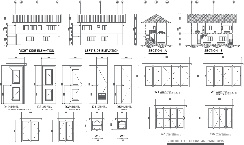 Detail door window schedule with front and side elevation AutoCAD dwg drawing