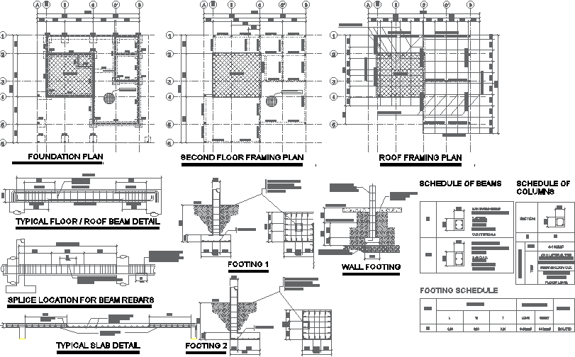 foundation plan with floor framing plan and roof framing plan autocad dwg drawing