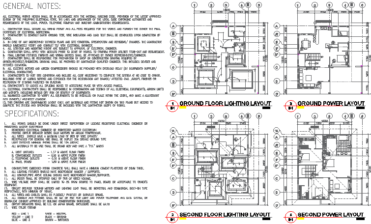 Lighting switches and mounting heights of two floors house plan AutoCAD DWG drawing.