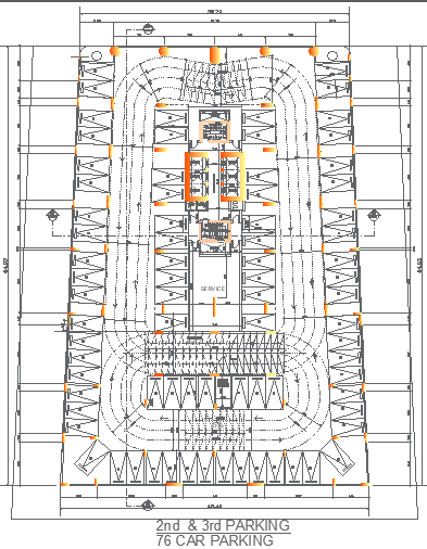 Parking Design for Commercial Building with 76 Car Spaces on 2nd and 3rd Floors In DWG File