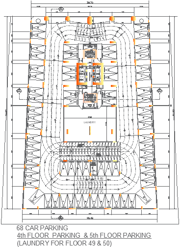 Commercial Building Parking Layout with 68 Car Spaces on 4th and 5th Floors In DWG File