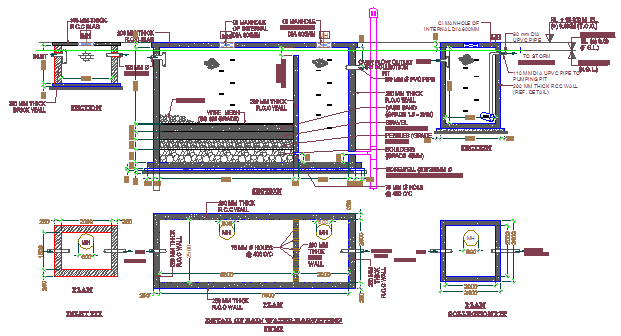 Here the System of rain water collection design drawing with plan design drawing, section design drawing and detail design drawing in this auto cad file.
