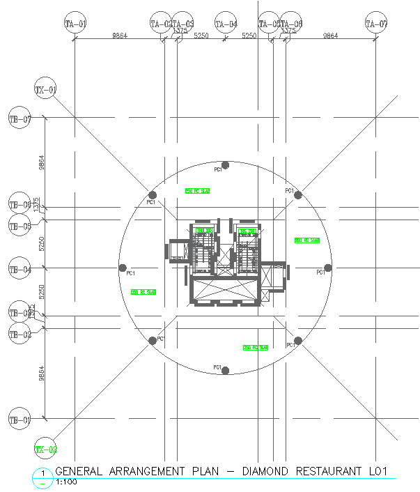 Explore a comprehensive AutoCAD DWG drawing detailing the general arrangement plan for a restaurant, meticulously designed to optimize space and functionality. This drawing showcases key elements such as column centerlines, level adjustments, and the layout of the Diamond Restaurant, ensuring efficient use of space and creating an inviting dining atmosphere. With a focus on the general arrangement of tables, seating areas, and service spaces, architects and designers can accurately plan and implement the restaurant's layout. Accessible as a 2D AutoCAD drawing in DWG format, this file serves as a valuable resource for restaurant owners and designers, facilitating seamless coordination and implementation of critical design elements for a successful dining experience.