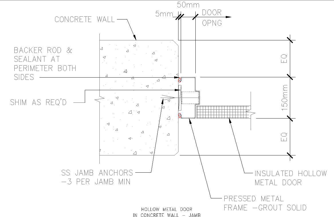 hollow metal door in concrete wall jamb detail dwg autocad drawing .