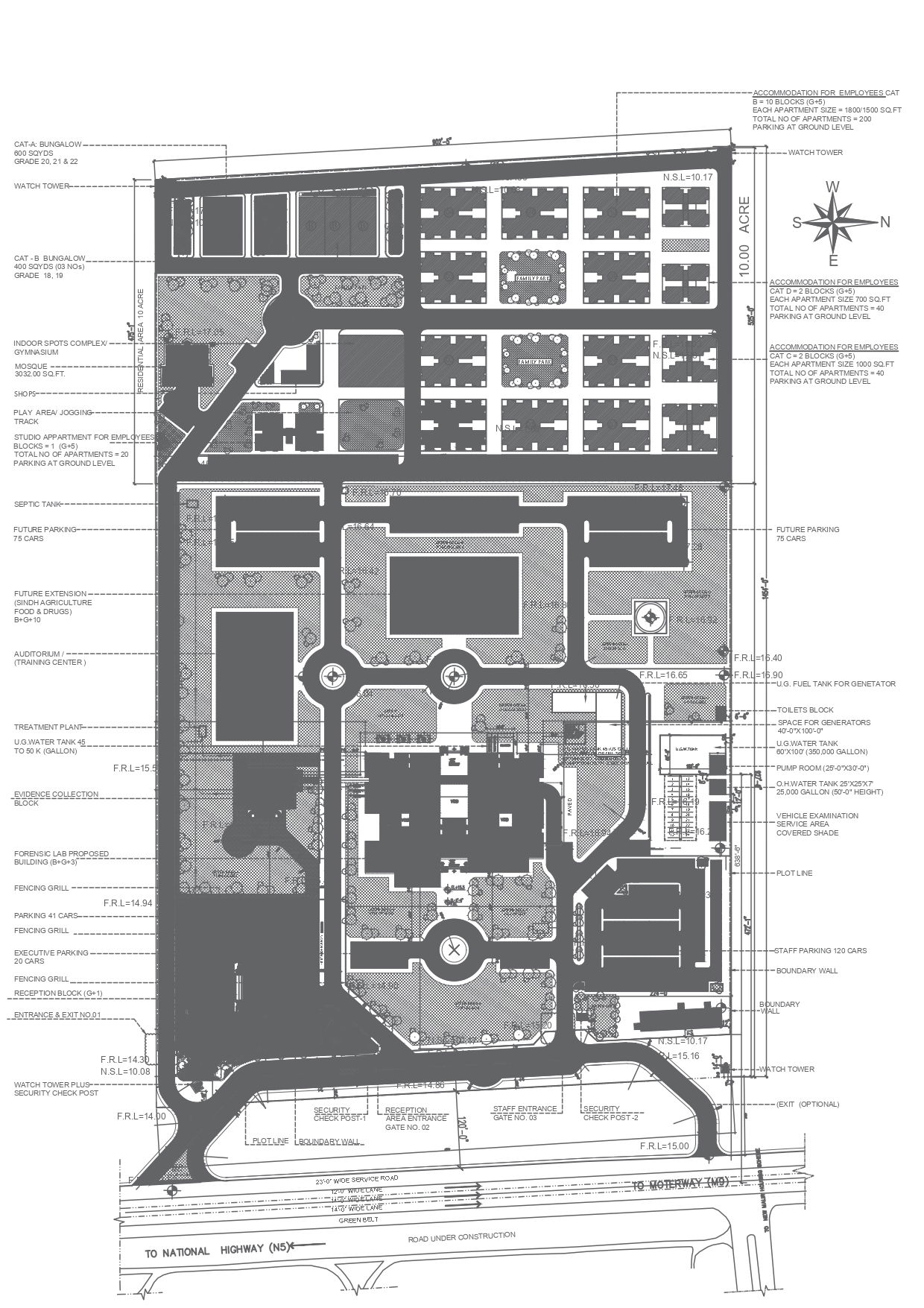 Landscaping design for sindh forensic science laboratory with realtime highway location dwg autocad drawing .