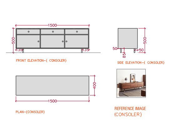 Modern Console CAD block: High-detail, scalable for any project. Perfect for designers. Instant download.