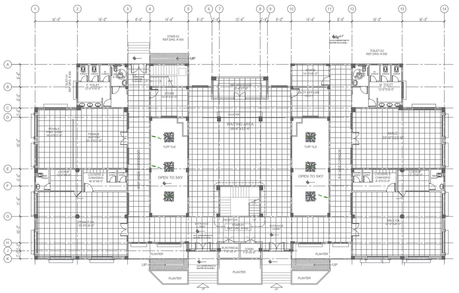 Explore the Sindh Forensic Laboratory in Karachi through its comprehensive tender drawings, specifically focusing on floor flooring layout and tile design. This AutoCAD DWG drawing offers detailed insights into the reception block, ground floor, first floor, and roof plans, alongside sections, elevations, and various sections like walls, windows, doors, and ventilators. Additionally, it includes miscellaneous details and staircase specifics crucial for project implementation. With a particular emphasis on flooring layout and tile design, these drawings provide essential information for architects and engineers involved in the project. Accessible in DWG format, these tender drawings serve as invaluable resources for planning and executing the flooring aspects of the laboratory efficiently.