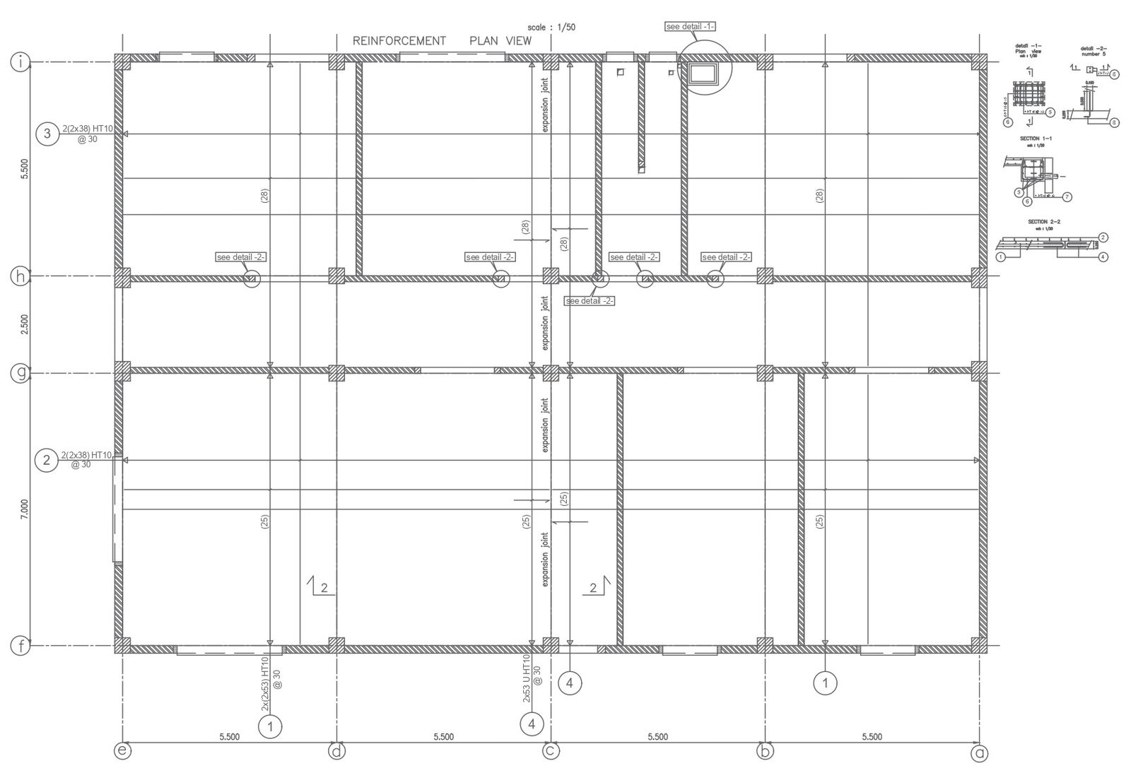 Control building ground floor reinforcement plan with deformed bars shaping detail autocad dwg drawing .