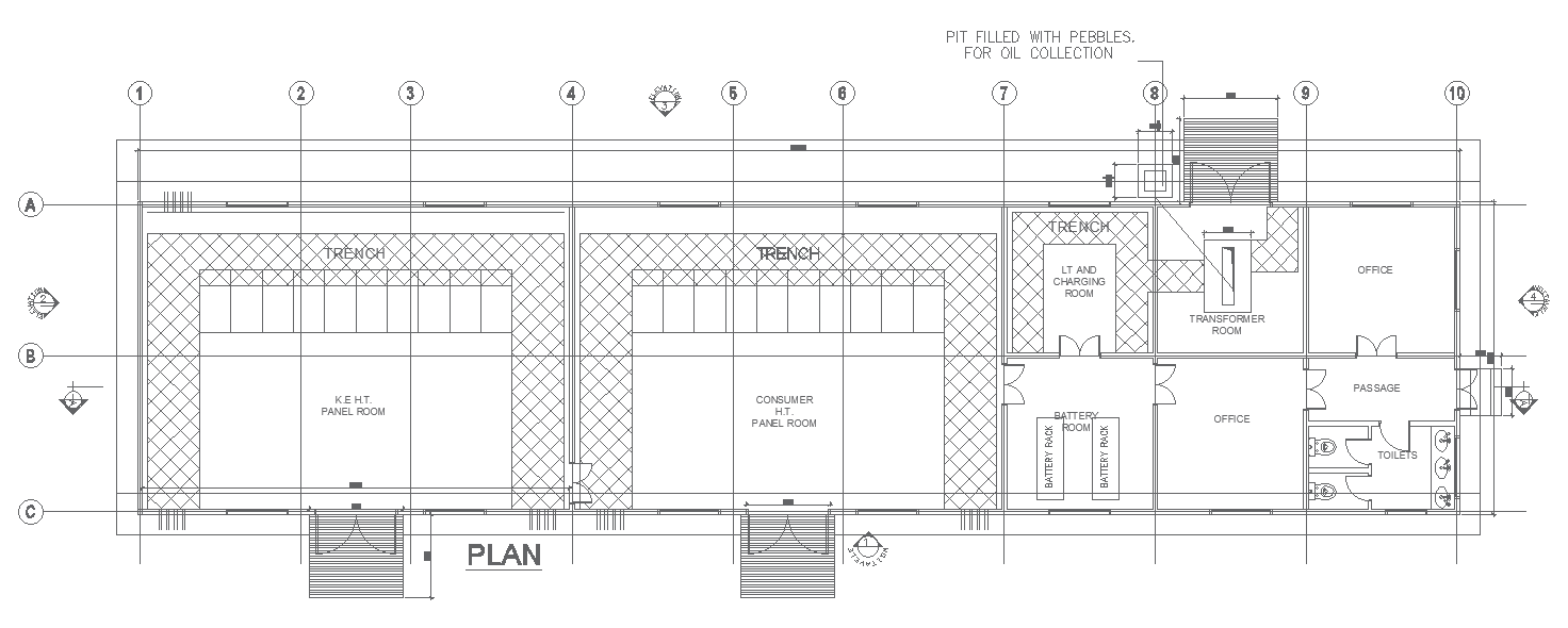 Explore the meticulously crafted Substation plan, elevation, and section details prepared by National Engineering Service Pakistan exclusively for the Sindh Forensic Science Laboratory. This AutoCAD DWG drawing offers comprehensive insights into various elements, including pits filled with pebbles for efficient oil collection, consumer HT panel rooms, trenches, charging rooms, battery rooms, toilets, passages, and more. With detailed plans and sections, this drawing provides essential information for the construction and maintenance of the substation. Ideal for engineers, architects, and construction professionals, this drawing ensures precision and accuracy in project execution. Accessible in digital format, it serves as a valuable resource for seamless integration into construction projects, enhancing efficiency and productivity.