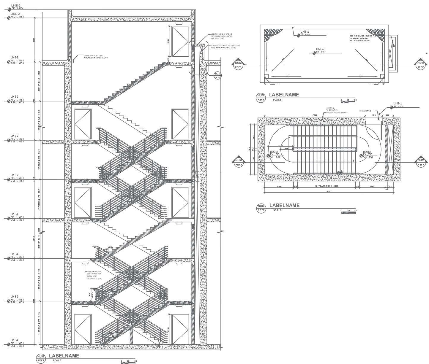 Discover the intricacies of stair design with this comprehensive AutoCAD DWG drawing, featuring detailed elevation views, top views, front views, and close-up corner details. Whether you're planning a residential or commercial project, this drawing provides essential insights into stair layout and construction. From the overall elevation to the finer details of corner construction, every aspect is meticulously depicted, ensuring accuracy and clarity in your design process. Perfect for architects, engineers, and designers, this drawing offers valuable guidance for creating functional and visually appealing staircases in any building, up to four floors high.