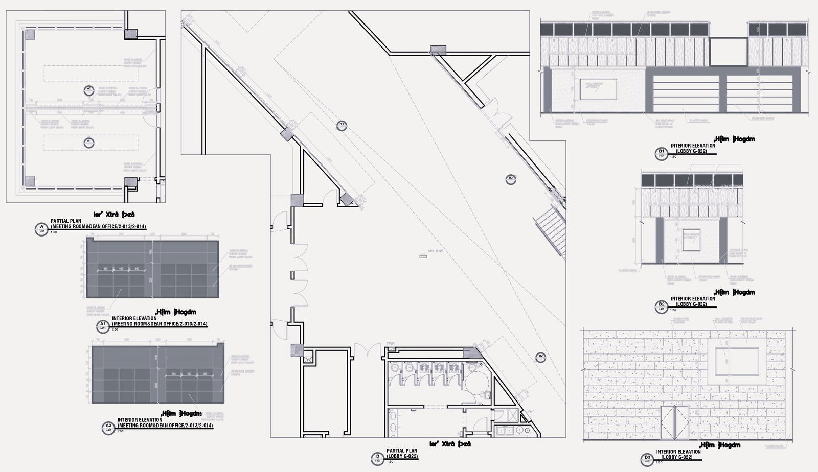 Explore the intricacies of lobby interior design and reinforcement layout with our detailed DWG AutoCAD drawing. This drawing offers a comprehensive view of the lobby's interior elevation, providing insights into the layout and design elements. From partial plans outlining the lobby's configuration to detailed interior elevations showcasing meeting rooms and dean offices, every aspect is meticulously documented. Dive into the reinforcement layout, gaining valuable insights into the structural integrity of the space. Whether you're an architect, designer, or engineer, this drawing serves as a valuable resource for optimizing interior design and ensuring structural stability. Elevate your project with our meticulously crafted DWG AutoCAD drawing, where every detail is thoughtfully considered to enhance functionality and aesthetics.