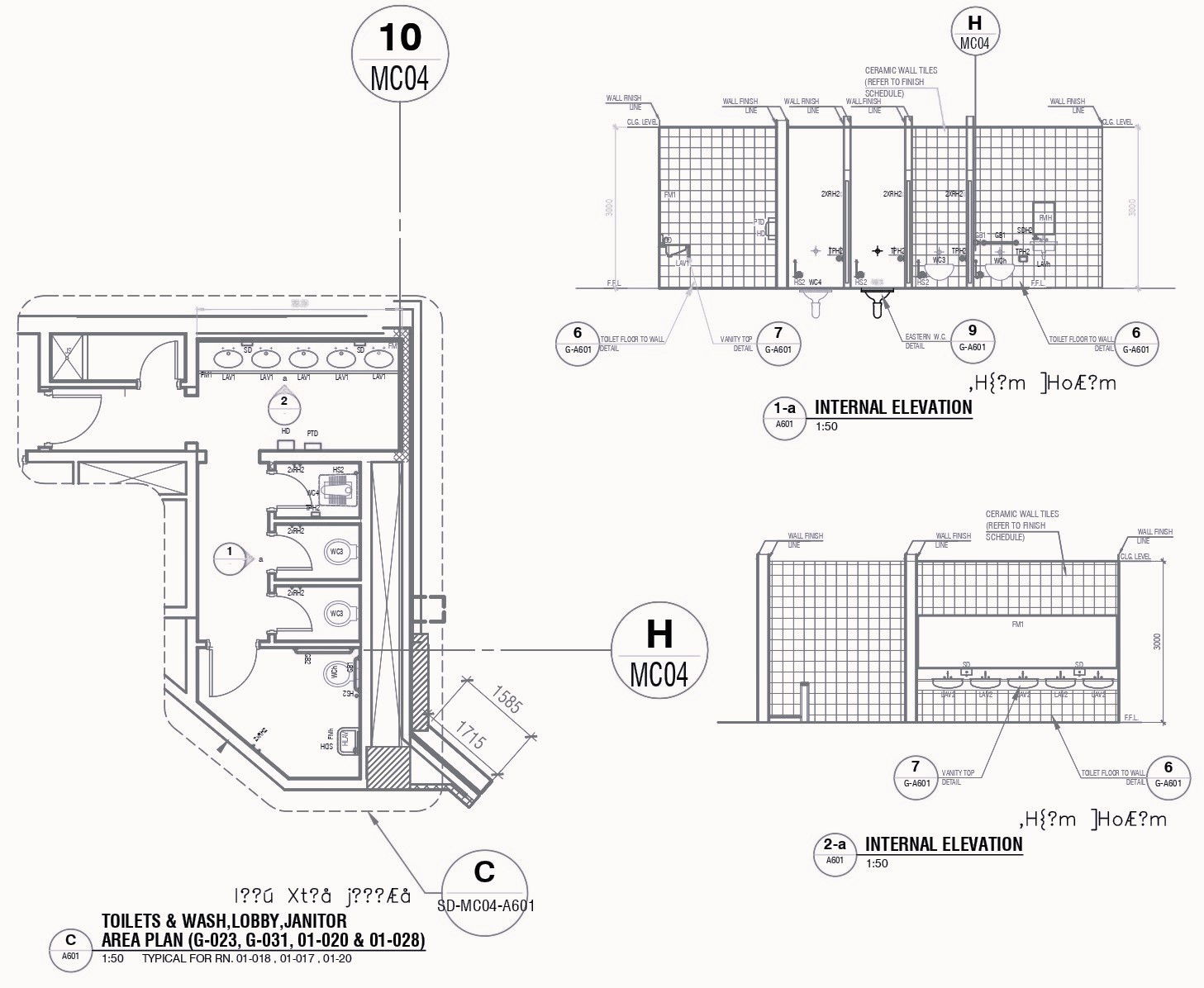Bathroom And Wash Lobby with Janitor Area Detailed Plan and Elevation in AutoCAD DWG File