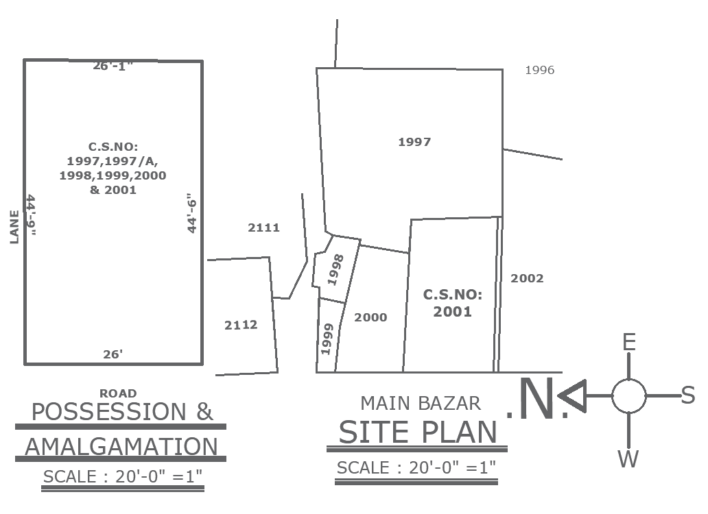 Explore the meticulously crafted AutoCAD drawing showcasing the possession and amalgamation of site plans in the bustling main bazar of Hyderabad. With precise dimensions and clear indications of the north direction, this drawing offers valuable insights into the layout and organization of the site within the vibrant marketplace. Navigate through the detailed depiction of possession boundaries and the strategic amalgamation of multiple plots, providing a comprehensive overview of the site's layout and boundaries. Whether you're a developer, urban planner, or real estate professional, this drawing serves as a valuable resource for understanding property boundaries and layout configurations in the heart of Hyderabad's main bazar. With its detailed annotations and clear presentation, this AutoCAD drawing facilitates effective decision-making and planning for various development projects in the area.