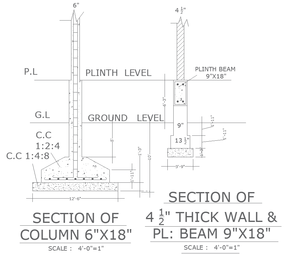 This AutoCAD drawing illustrates detailed sections of columns and thick wall beams, providing crucial insights into their structural composition and placement. With sections depicting the plinth level and ground level, it offers a comprehensive view of the structural elements from different perspectives. The section of the column highlights its dimensions, reinforcement details, and connections at various levels, ensuring clarity in construction planning and implementation. Similarly, the section of the thick wall beam provides essential information regarding its dimensions, reinforcement layout, and connections to adjacent structures. Engineers and architects can utilize this drawing to understand the structural integrity of columns and beams, ensuring they meet design specifications and withstand anticipated loads. Whether for new construction projects or renovations, this detailed AutoCAD drawing serves as a valuable resource for accurate structural planning and execution.