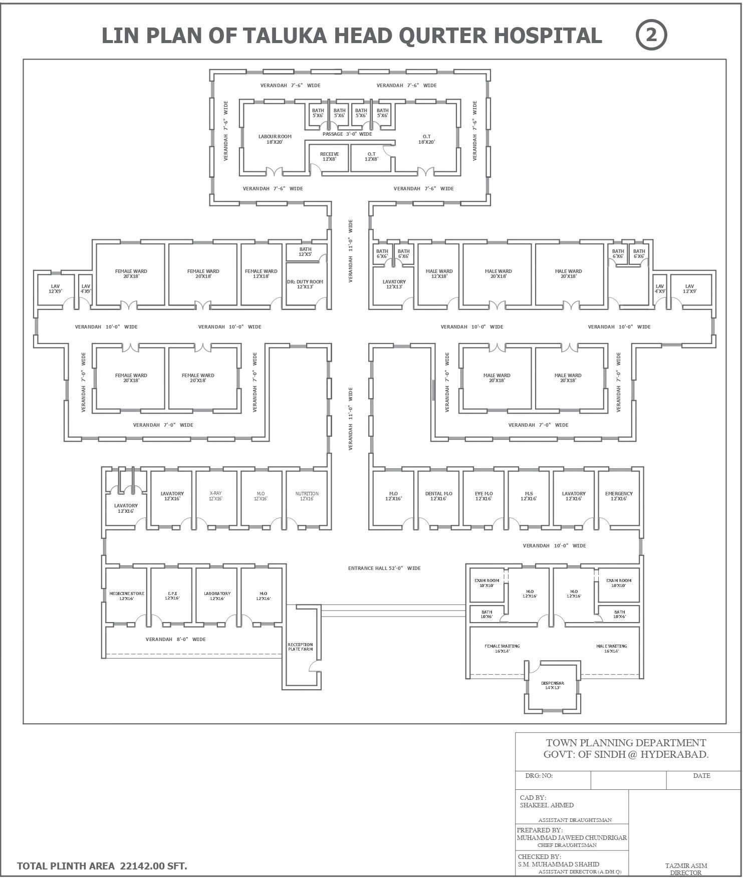 Line plan of taluka headquarter hospital by town planning department govt of sindh dwg autocad drawing .