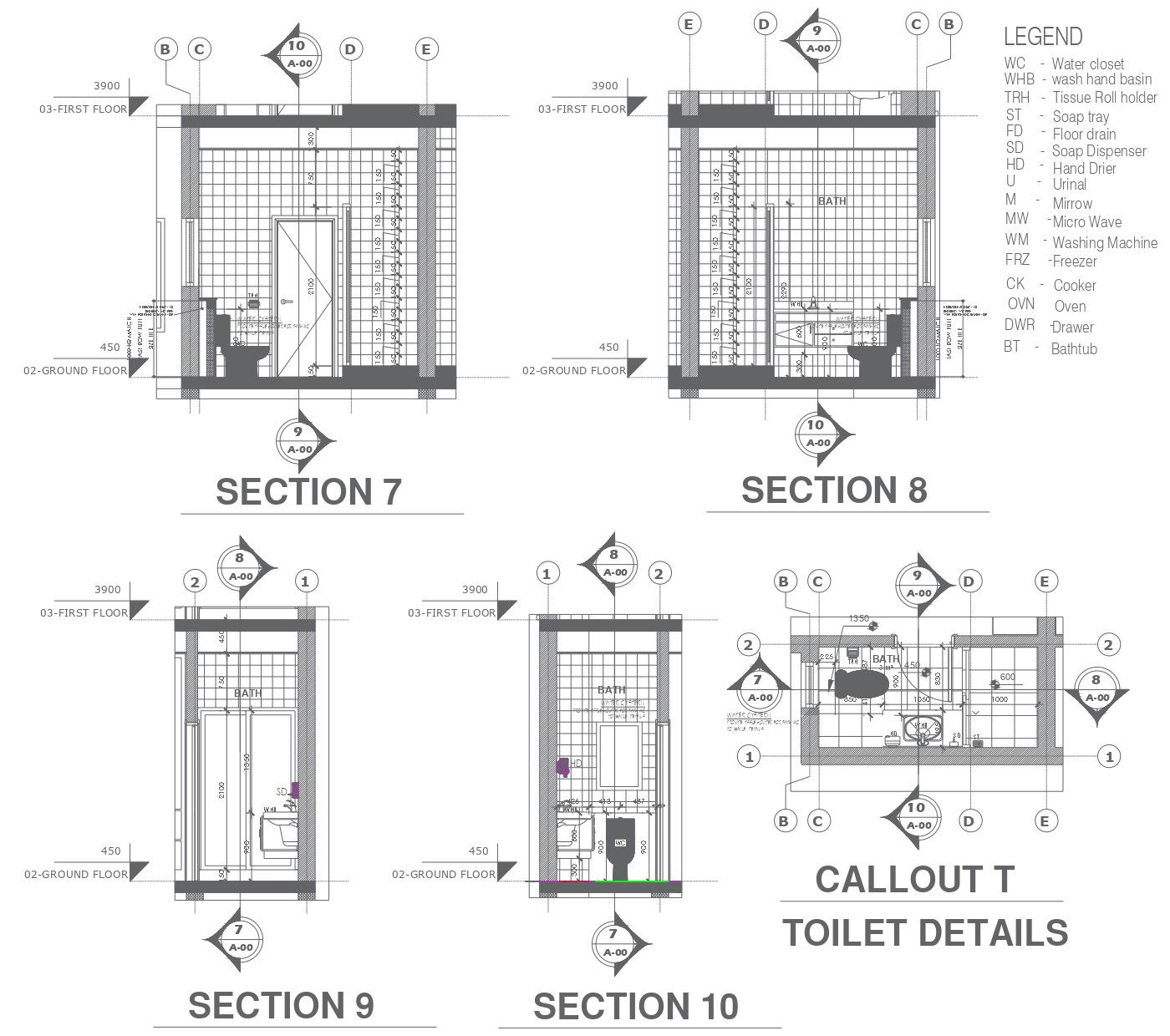 Callout toilet detail elevation and flooring layout of house plan dwg autocad drawing .