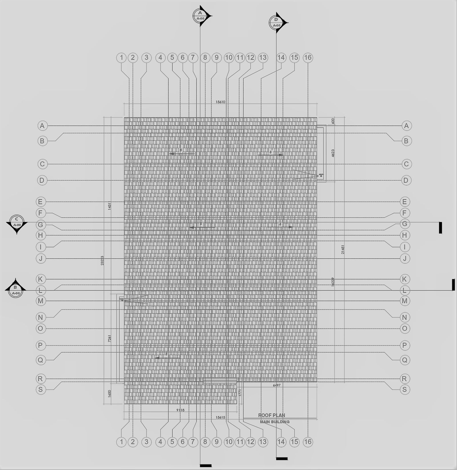 Delve into the intricacies of the main building's roof plan with this meticulously detailed AutoCAD DWG drawing. Featuring precise dimensions, center lines, and comprehensive detailing, this drawing offers valuable insight into the structural layout of the roof. Every aspect, from the foundation detail to the beam layout, is meticulously depicted, providing architects, engineers, and designers with a clear understanding of the roof's design. Whether for architectural analysis, construction planning, or design reference, this drawing serves as a valuable resource. Explore the functional and aesthetic aspects of the roof plan, and gain a deeper understanding of its architectural significance. With its detailed depiction of center lines and dimensions, this AutoCAD drawing offers a comprehensive view of the roof's layout, aiding in the seamless execution of architectural projects.
