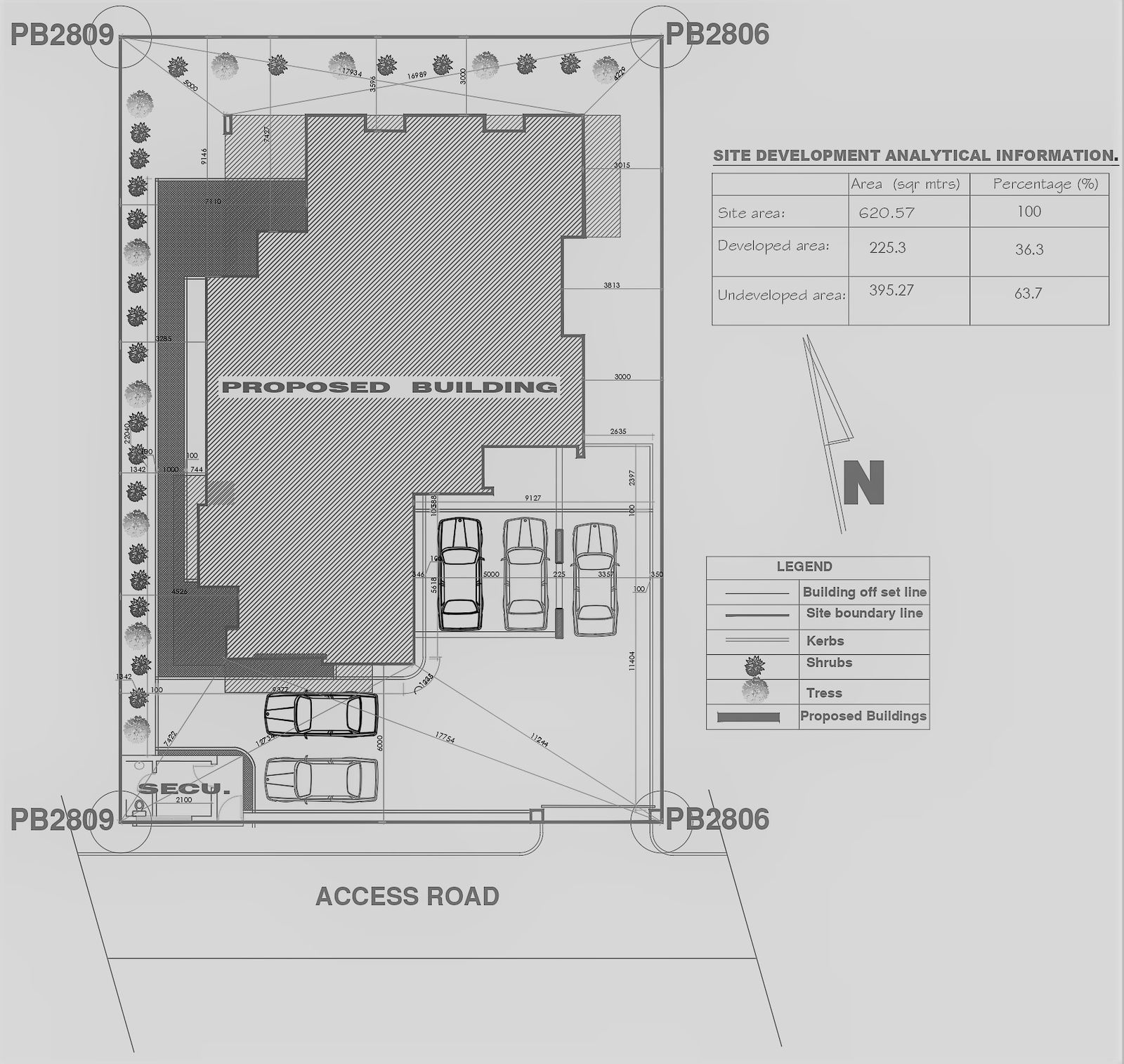 Proposed building plan with site developement analytical information and landscaping detail dwg autocad drawing .