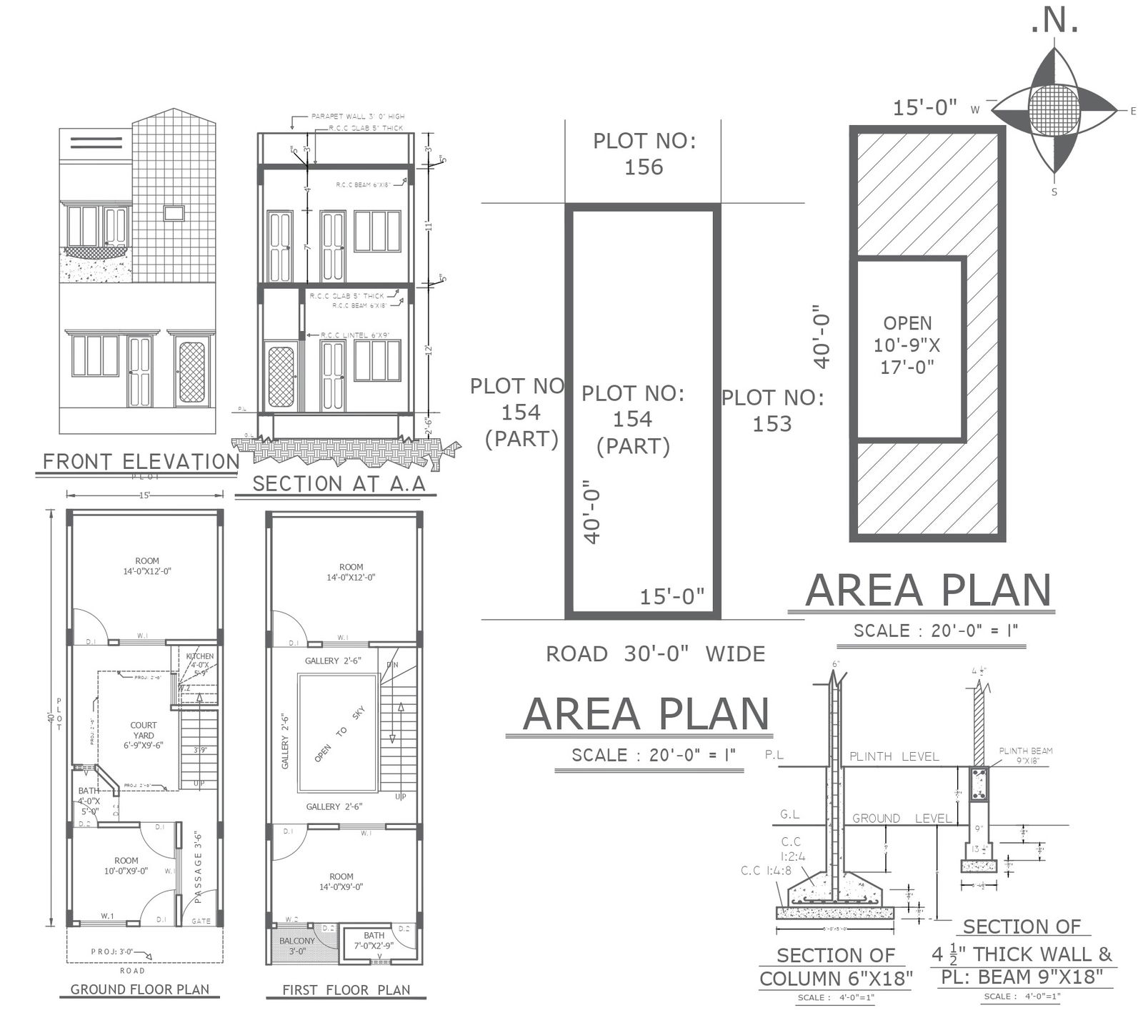 Plot no 154 area plan details with elevation section and site layout detail dwg autocad drawing.