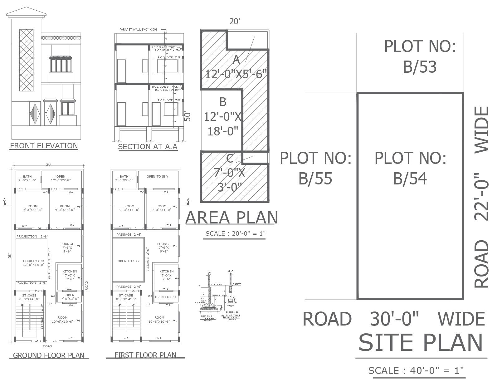 Two floor bungalow design for use with section elevation and floor detail dwg autocad drawing .