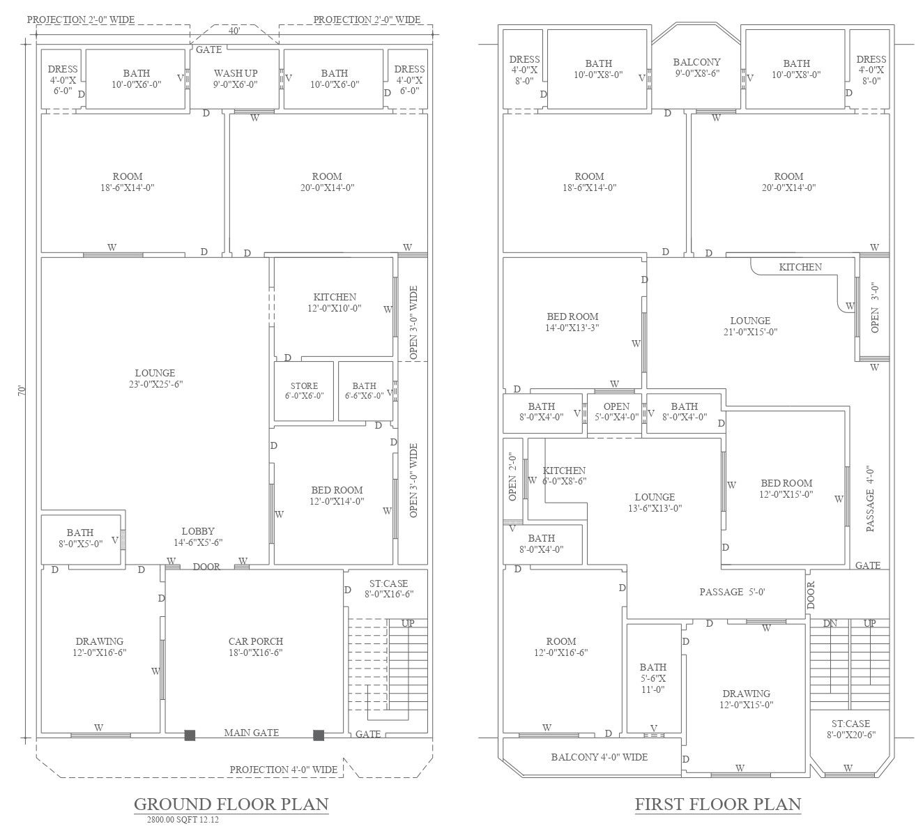 2800 sq. ft. Residential Building Ground Floor and First Floor Plans Detail In DWG File
