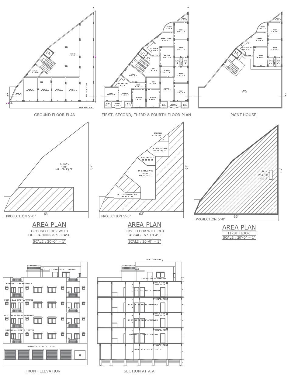 Housing building with elevation design and plan design detail autocad dwg drawing.